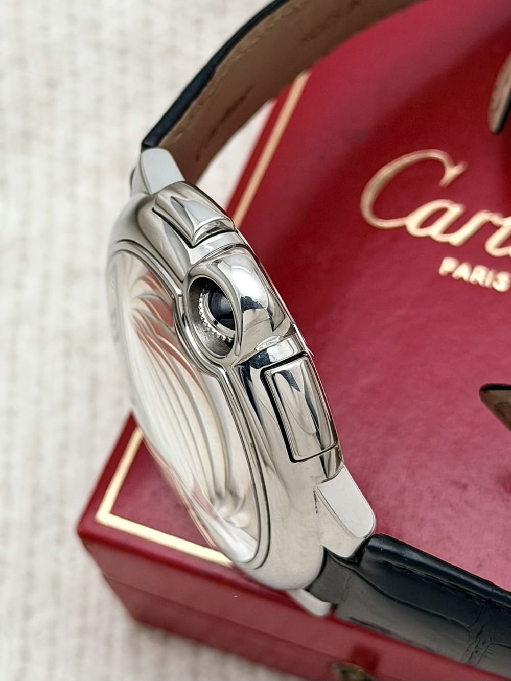 Desde su lanzamiento en 2007, el Ballon Bleu se consolidó como uno de los diseños más icónicos y celebrados de Cartier: una caja que parece esculpida por la luz misma, con curvas fluidas y un protector de corona que abraza su cabujón azul como un planeta en órbita 🌌. Pero es la versión de cronógrafo que eleva aún más la propuesta, uniendo el refinamiento estético con un mérito mecánico incuestionable: en su interior late el calibre Cartier 8101 MC, un cronógrafo automático con rueda de pilares y doble barrilete de cuerda, basado en el legendario Jaeger-LeCoultre 750… arquitectura de alta relojería que garantiza precisión, suavidad en la activación de los pulsadores y una precisión siempre-estable. Este equilibrio entre la maestría técnica y el diseño escultórico es una de las pruebas más claras del talento atemporal e ilimitado de Cartier 😍.