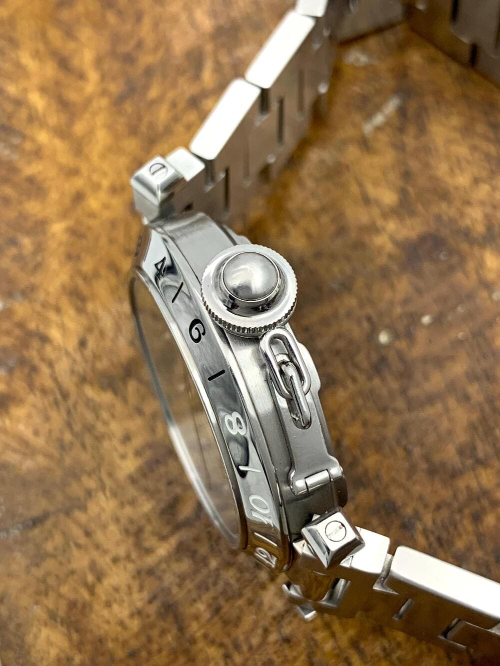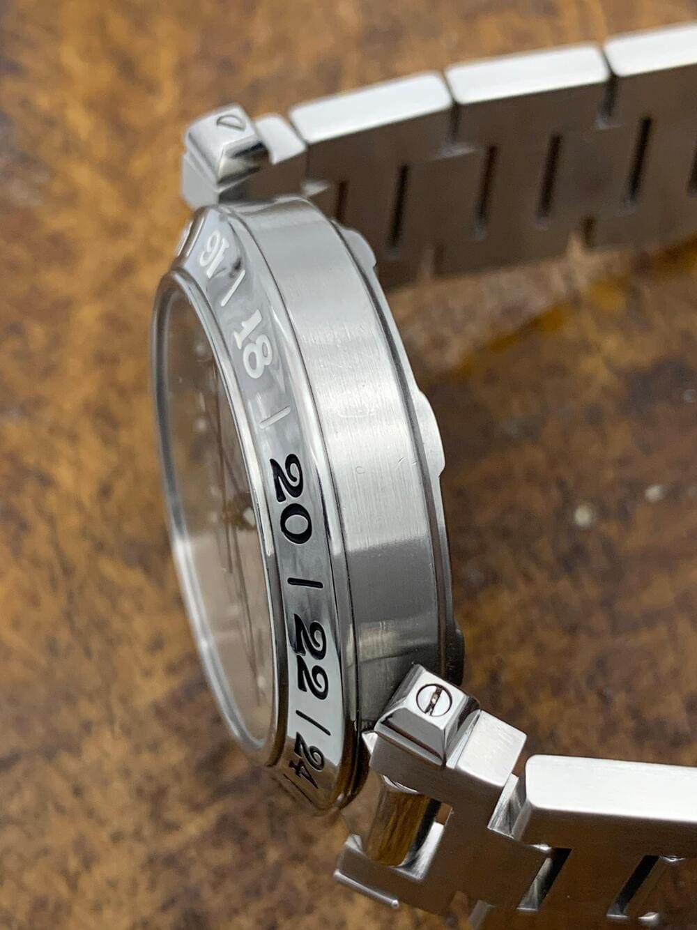 Pero en razón de su historia, las virtudes del Pasha van incluso más allá del diseño 😯: el protector de la corona atornillado y su tapa con tornillos le permiten 100 metros de hermeticidad, que en fusión con el brazalete de acero le permiten a este reloj sumergirse debajo del agua y debajo de la camisa 🤩.