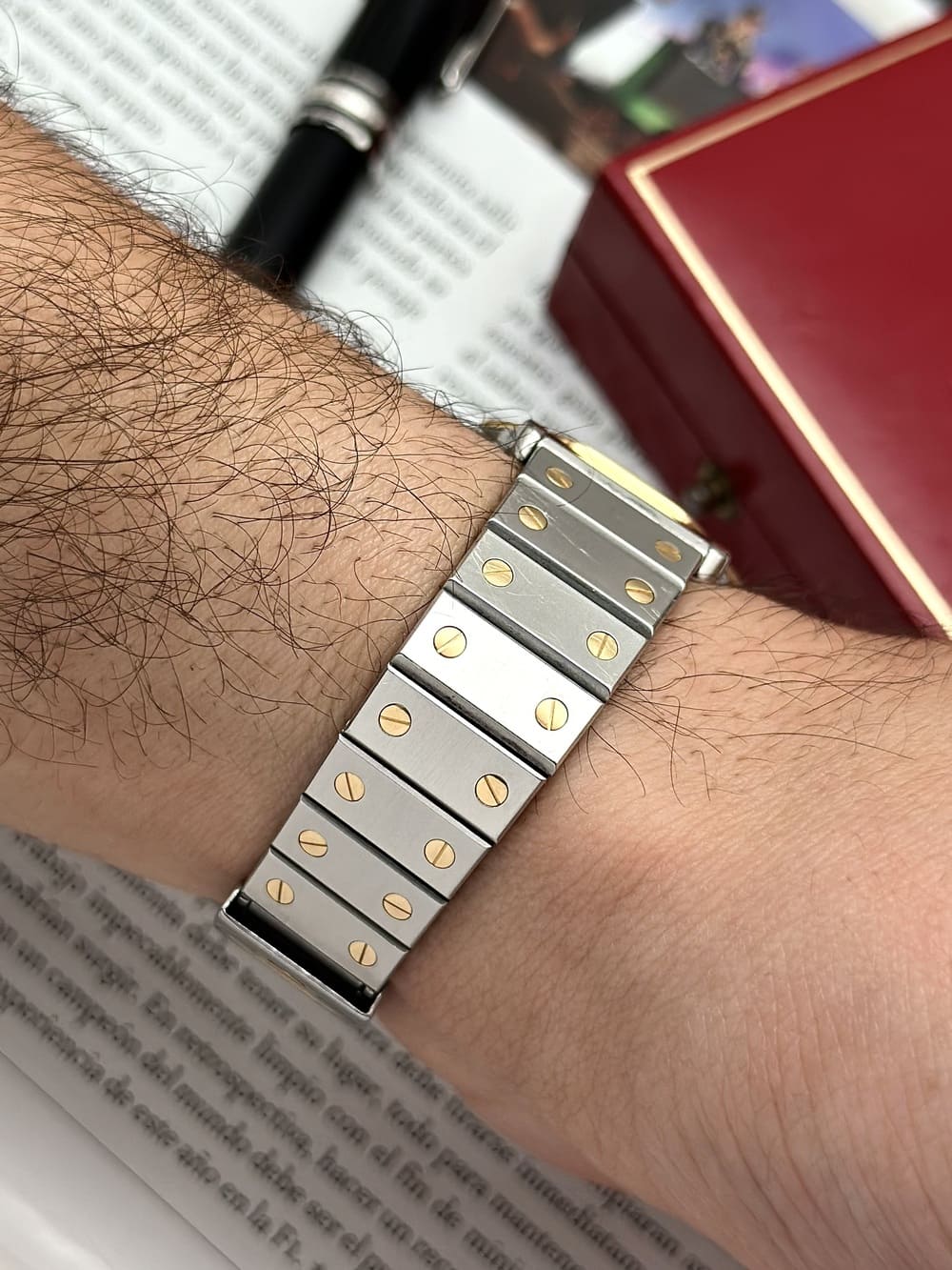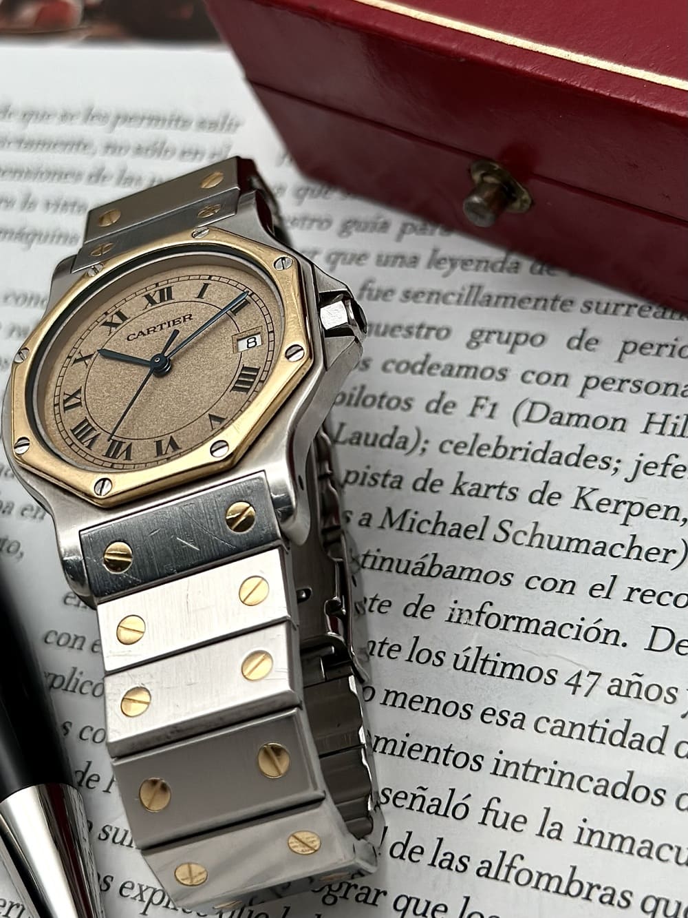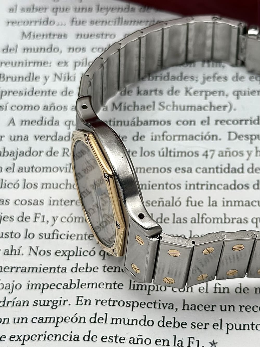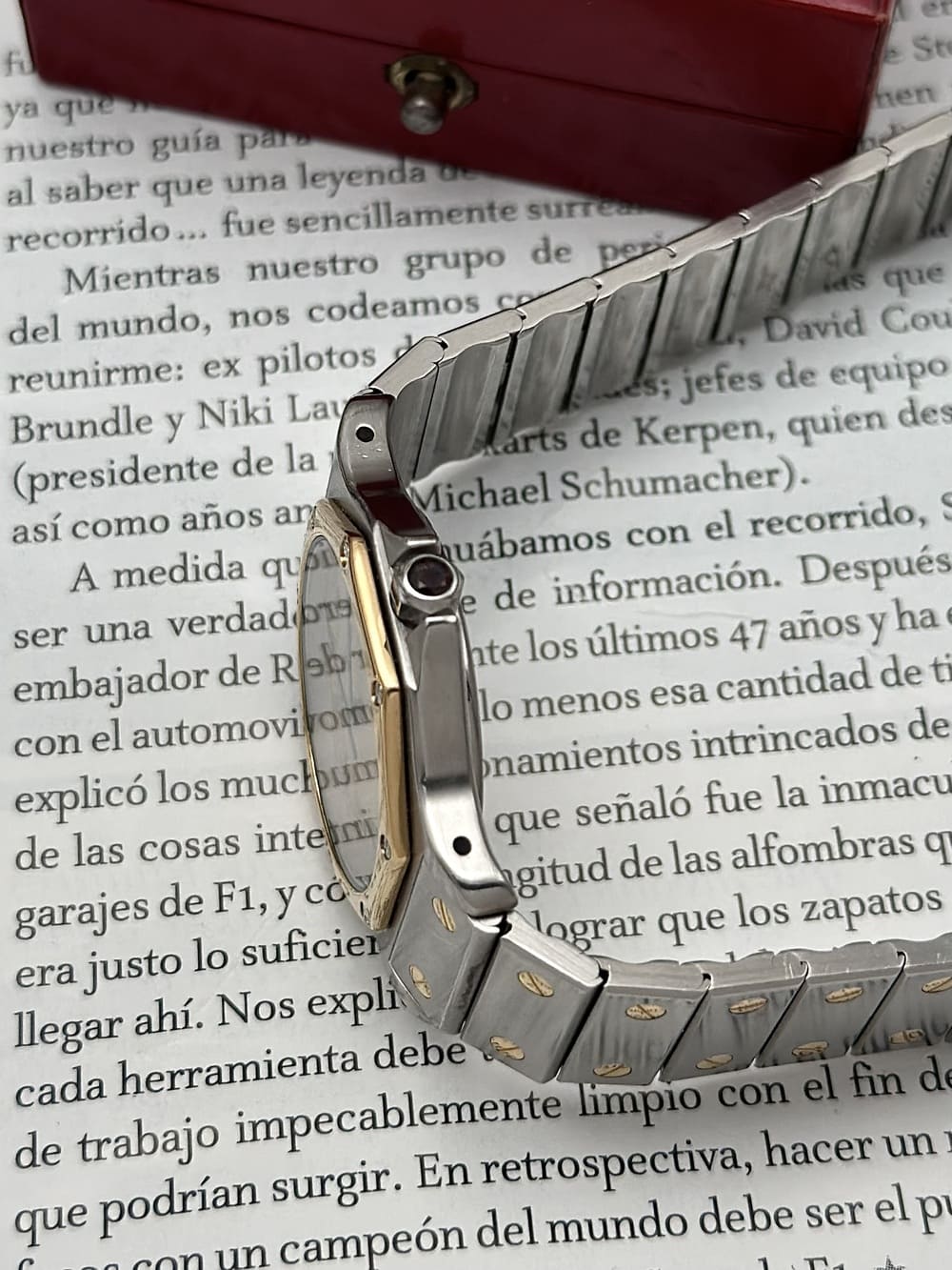 El Santos Octagon FUE -y nunca volvió a producirse- un reloj muy especial dentro de la estirpe Santos. Mantuvo, claro, el ADN de los tornillos expuestos y el lenguaje clásico del dial con números romanos 🕰️, pero se atrevió a romper la geometría: no cuadrado, sino octogonal. Una belleza INÉDITA en los 80 que, cerca de 40 años después, nos recuerda que un ícono puede reinterpretarse de forma distinta, incluso opuesta… y aun así conservar su esencia y ser PRECIOSO 😍.