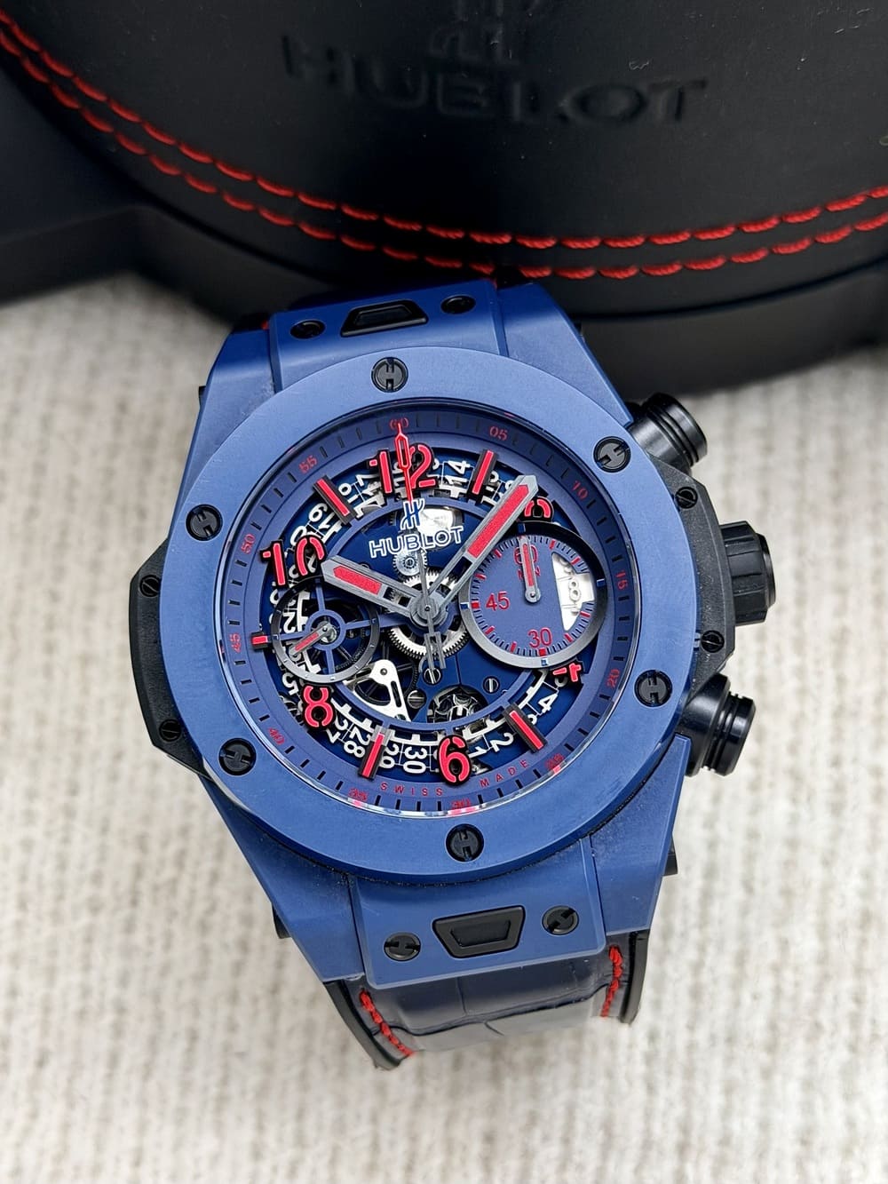 Señores… es este un reloj ÚNICAMENTE estiloso, con una mecánica realmente admirable como un genuino aporte a la relojería, como nunca. Un ícono moderno que entiende el contraste como identidad y la audacia como la forma. CERÁMICA AZUL Y TITANIO, TRANSPARENCIA Y MECÁNICA EN UNA SOLA PIEZA. Este Big Bang afirma su carácter con determinación y presencia inolvidable, limitado a 200 afortunados 🤯.