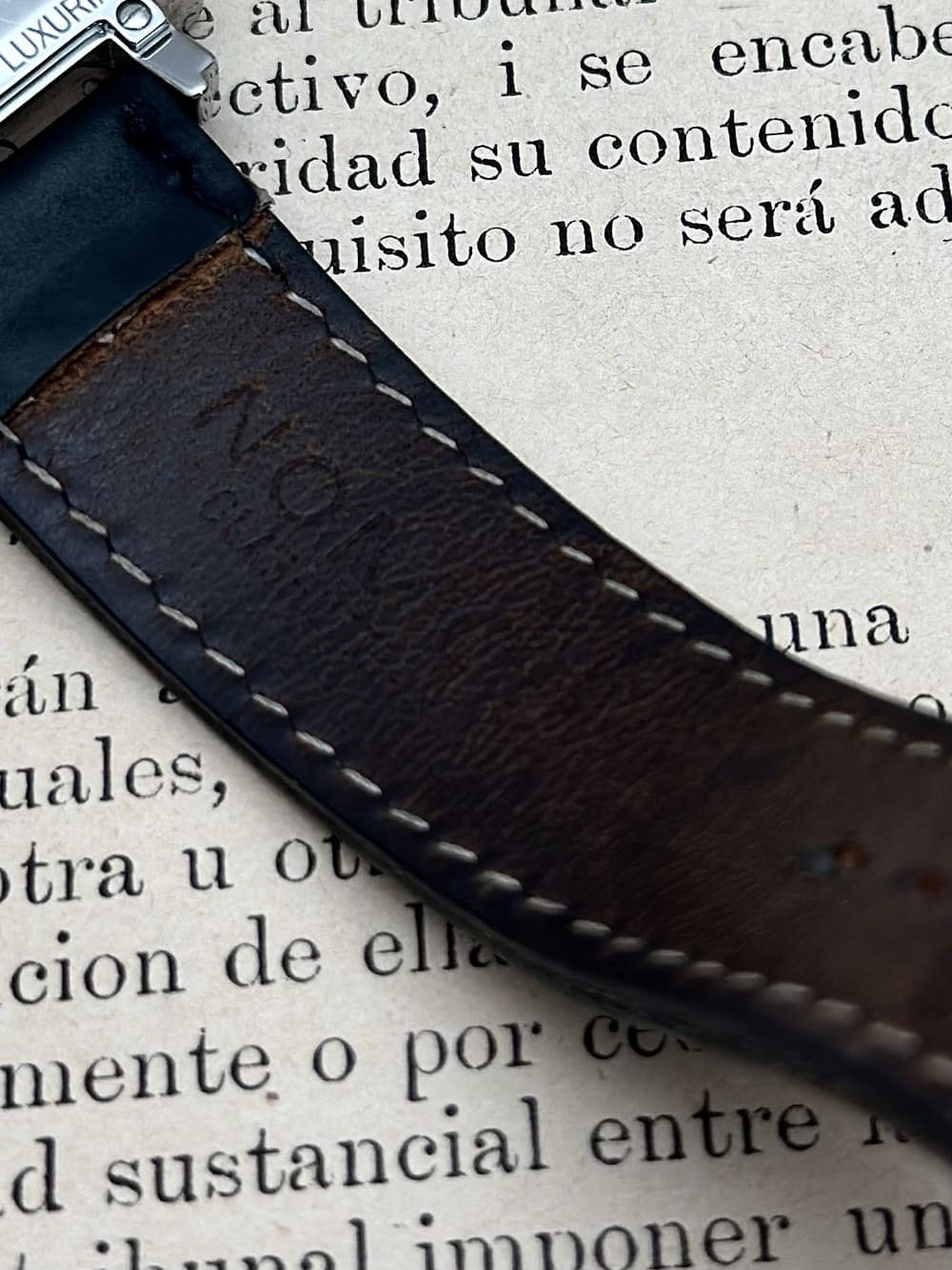 🔸 Material del brazalete/correa: Cuero negro original con hebilla firmada.