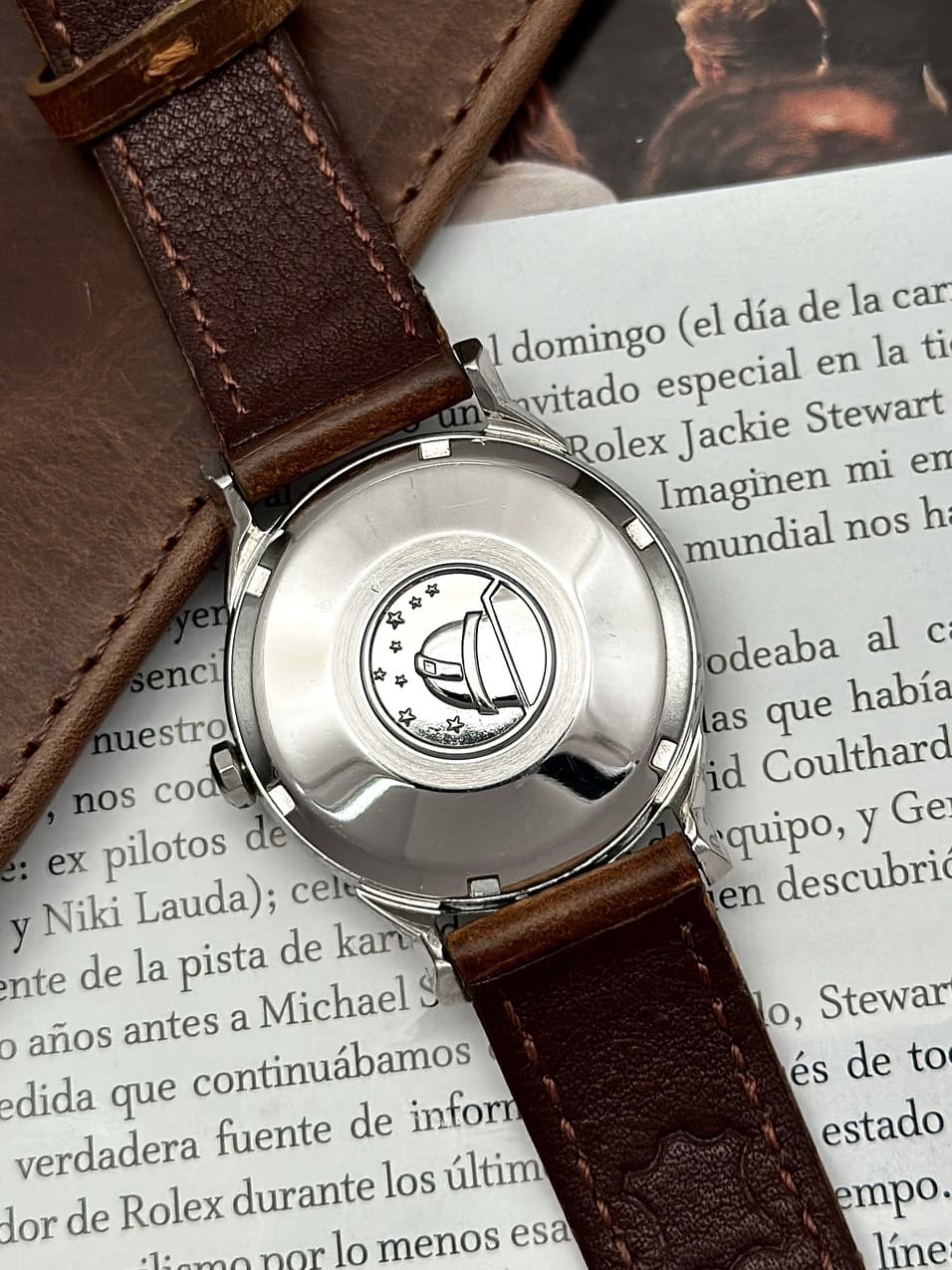 El logo aplicado a las 12, la estrella dorada a las 6 y la tipografía intacta completan una composición que hoy sigue siendo tan seductora como en su nacimiento: LEYENDA VIVIENTE, historia portable.