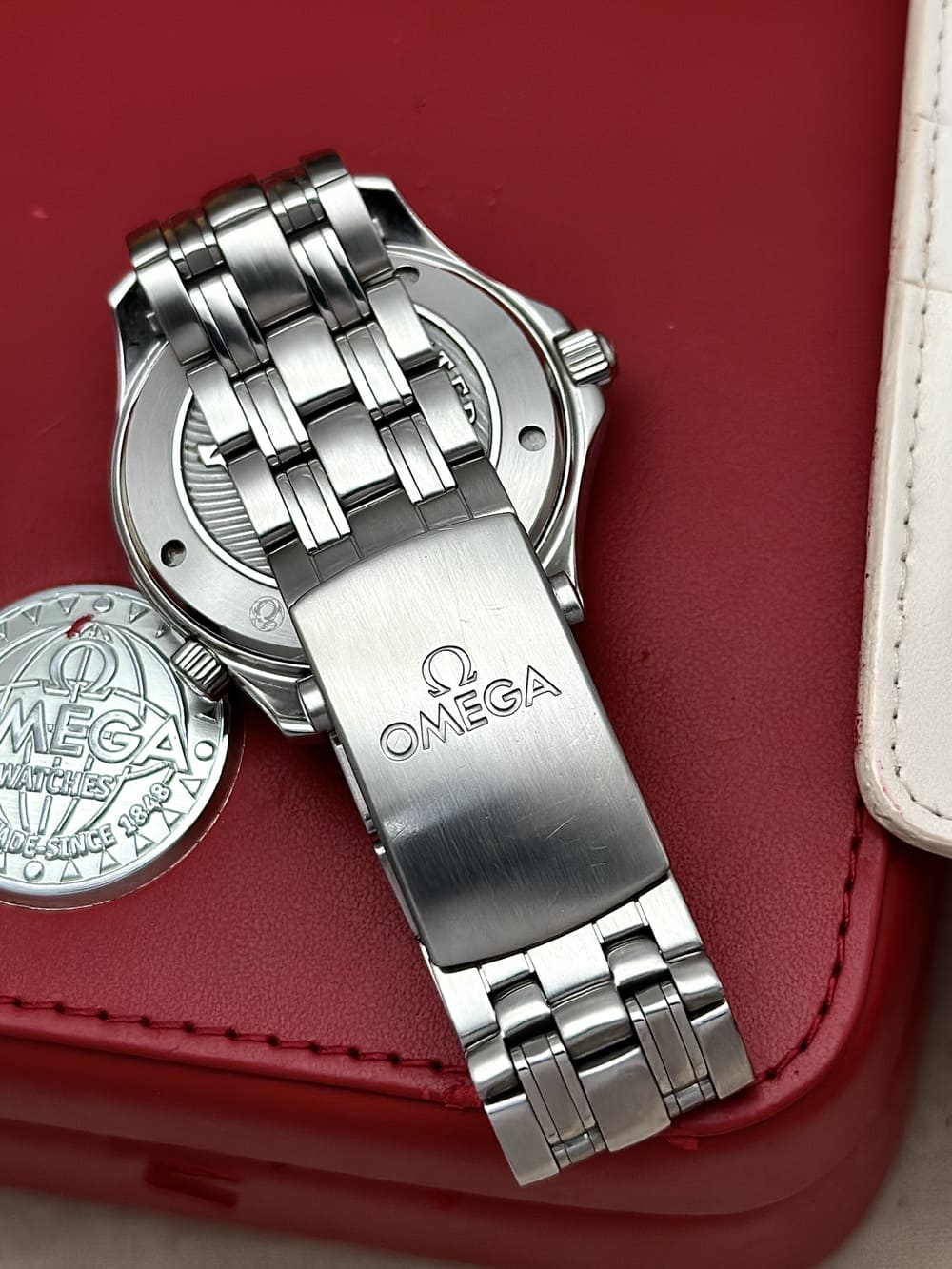 También, fue esta la última referencia con que el Seamaster Diver 300M se ofreció en 41 mm de diámetro y con un perfil un tanto más delgado que el actual… su intención versátil es clara: traje de buzo y traje formal, mismo reloj 👏.