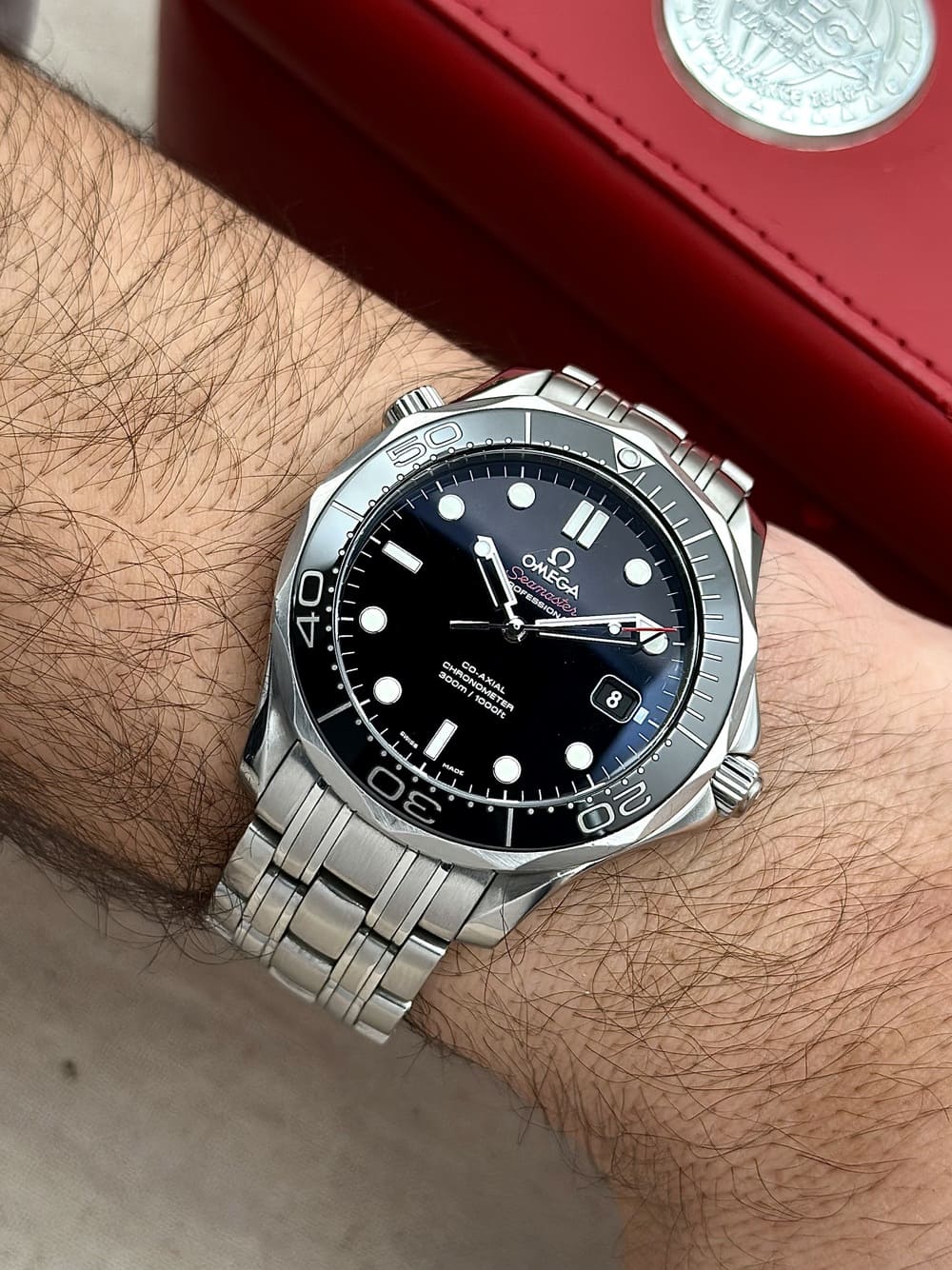 Con sus reflejos en el bisel y esfera es posible confirmar que este Seamaster Diver 300M tiene ese toque moderno, ese toque de «eternamente nuevo» que marca la diferencia 👌, pues NO ENVEJECE, mientras se goza de unas dimensiones perfectas y atemporales, ya extintas en la versión posterior.