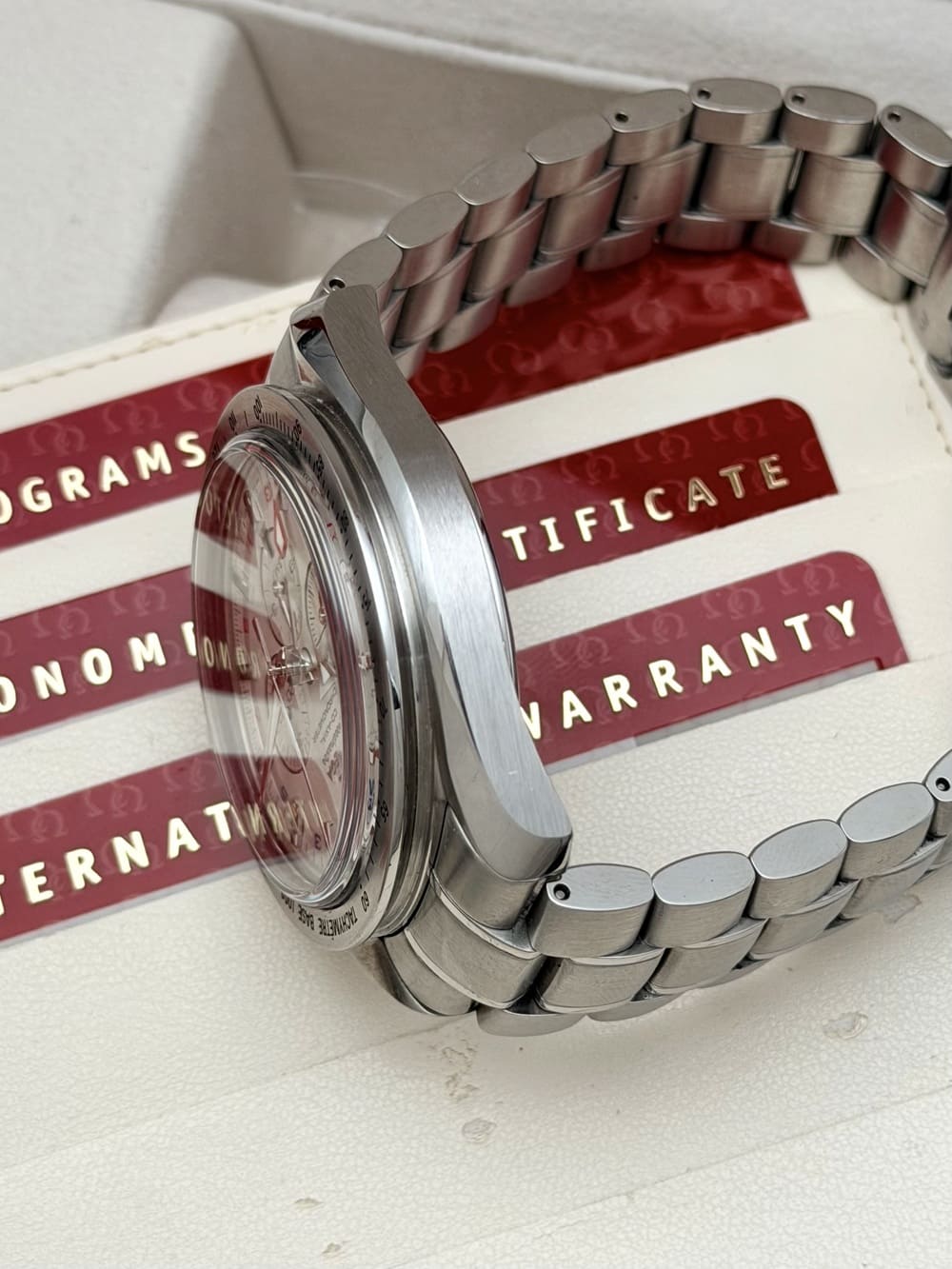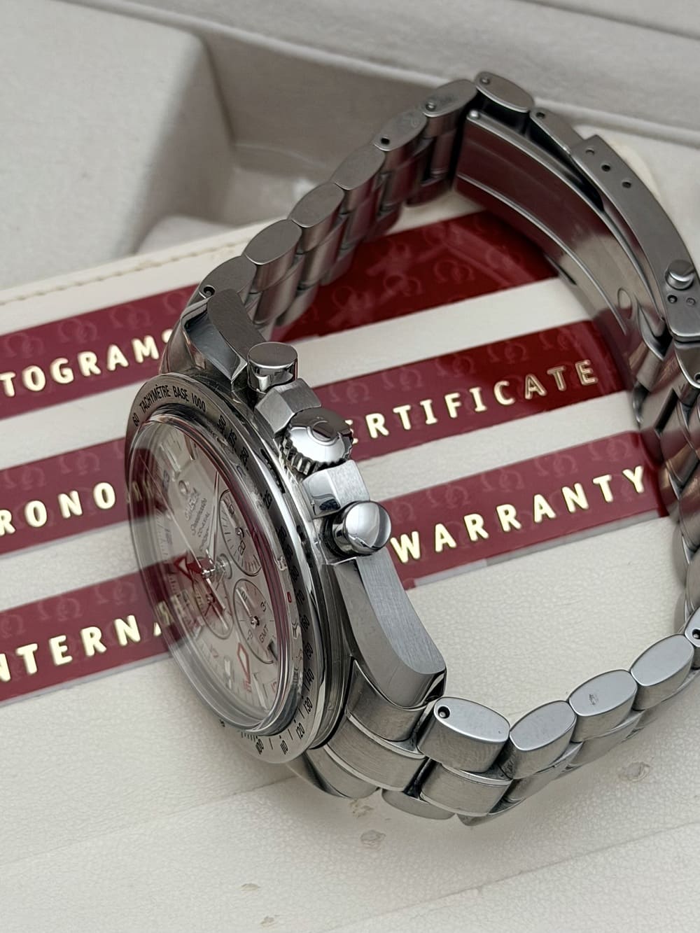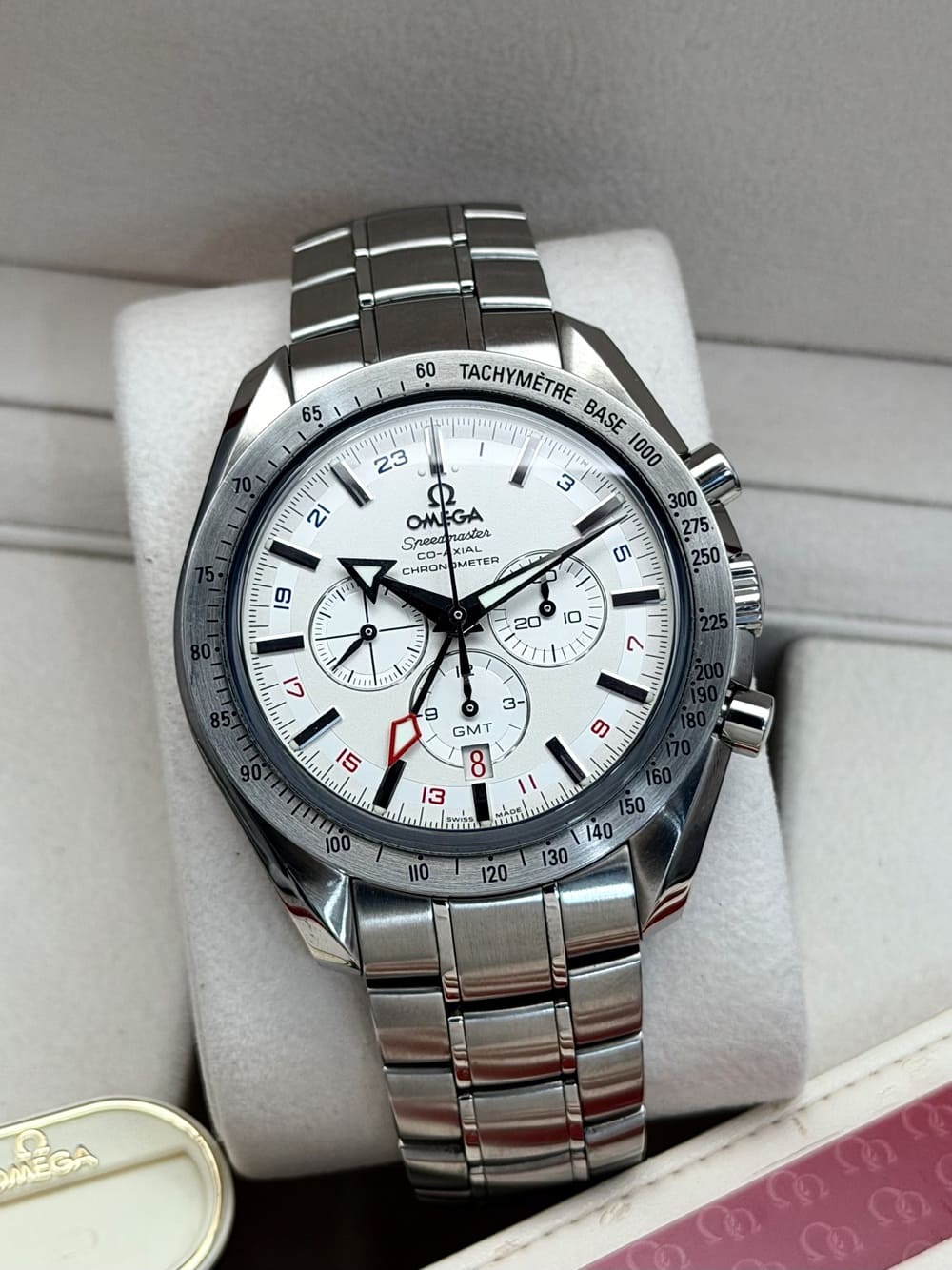 Omega Speedmaster Broad Arrow Co-Axial GMT White Dial 44 mm FULL SET, automático.