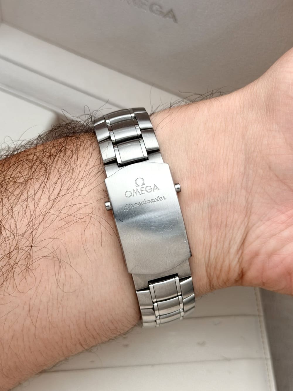 La complicación GMT introduce una dimensión especialmente práctica para el viajero moderno 😯. Una aguja central con punta de flecha roja permite seguir un segundo huso horario mediante el anillo interno con numeración de 24 horas, convirtiendo este Speedmaster en un cronógrafo pensado también PARA MOVERSE ENTRE CIUDADES Y CONTINENTES ✈️.