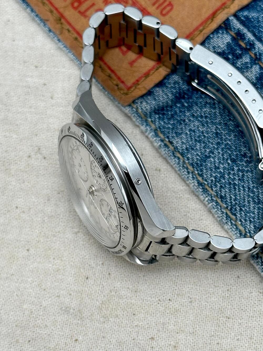 Un modelo descontinuado, pero vigente como ninguno. UNA VERSIÓN DIFERENTE DEL SPEEDMASTER QUE HOY YA NO EXISTE EN CATÁLOGO. Este es uno de esos relojes que si lo pruebas… lo quedas. Y si lo dejas ir… lo extrañas: no tiene remedio equiparable.