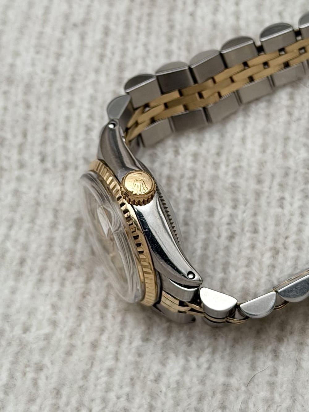 Hay algo especial en la forma en que la caja se acomoda a la vista. Los 26 milímetros parecen diseñados para quienes entienden que la elegancia real nunca depende del tamaño, sino de la INTENCIÓN. El Rolesor -esa combinación icónica de acero inoxidable y oro amarillo- proyecta una luz que va cambiando según el ángulo, creando un AURA íntima. Y entonces aparece el BISEL ESTRIADO: la firma histórica que terminó convertida en SÍMBOLO absoluto de estilo Rolex 🤩.