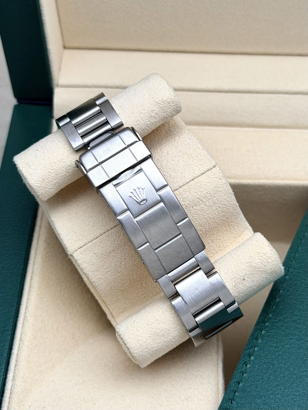 Las condiciones de este submarino del año 1991 son genuinamente espectaculares, originales, y en la muñeca se siente toda la fuerza 🦾 de un Submariner de brazalete sólido y cristal de zafiro a la vez que se lucen los clásicos 40 milímetros, un diámetro ya ideal que esta marca hace que a TODO EL MUNDO LE CALCE PERFECTO: Y ADEMÁS CON EL ASPECTO VINTAGE PERFECTO con el envejecimiento del tritio a un tono anaranjado 😍, lujo de pocos… para derretirse de belleza al verlo en muñeca. Es más que un Submariner corriente, es una pieza con personalidad, con fuerza, con el carácter de ser realmente único. Con la ventaja de lucir condiciones preciosas en el acero, y la fortuna de lucir un dial único 🧡.