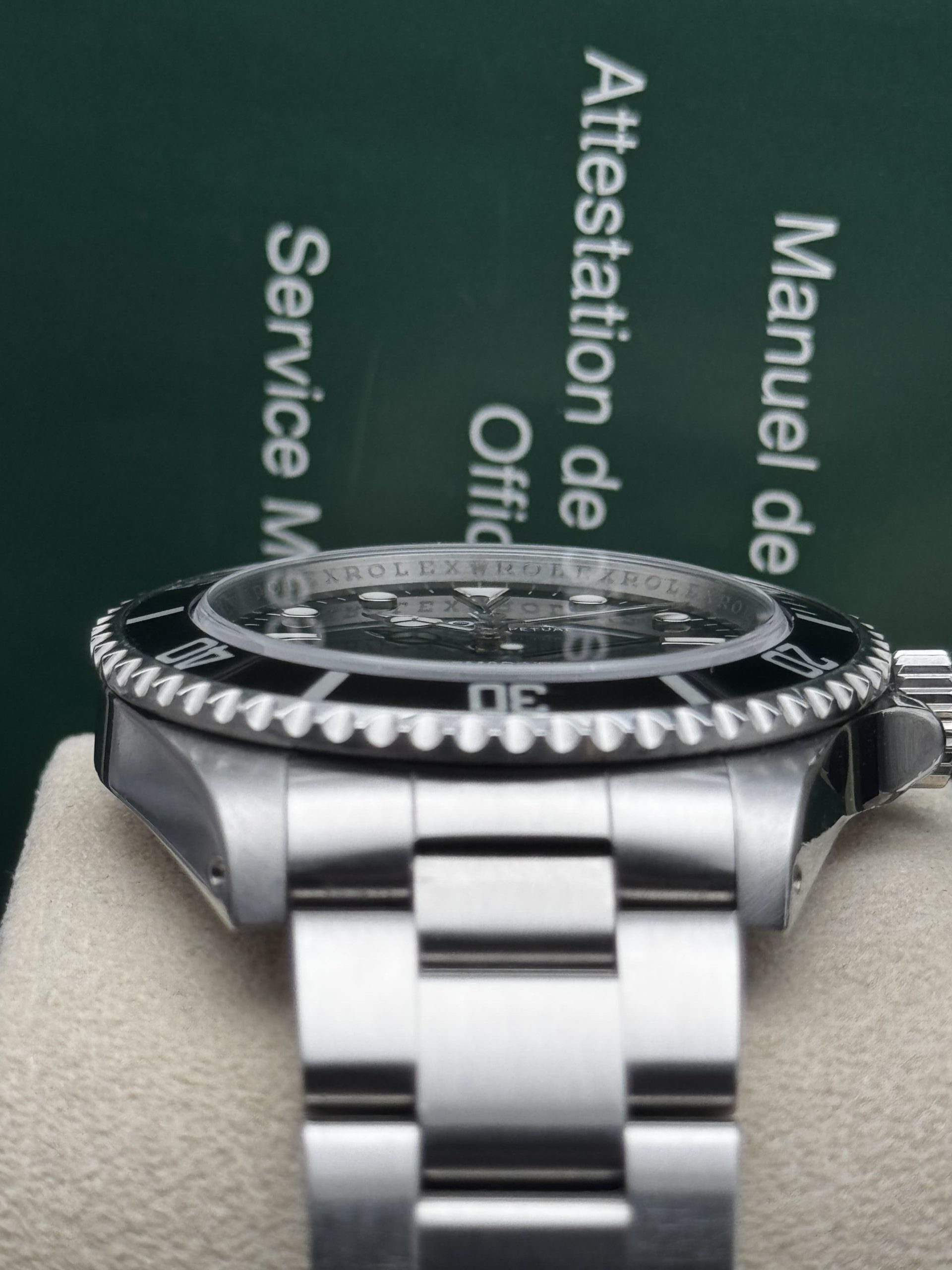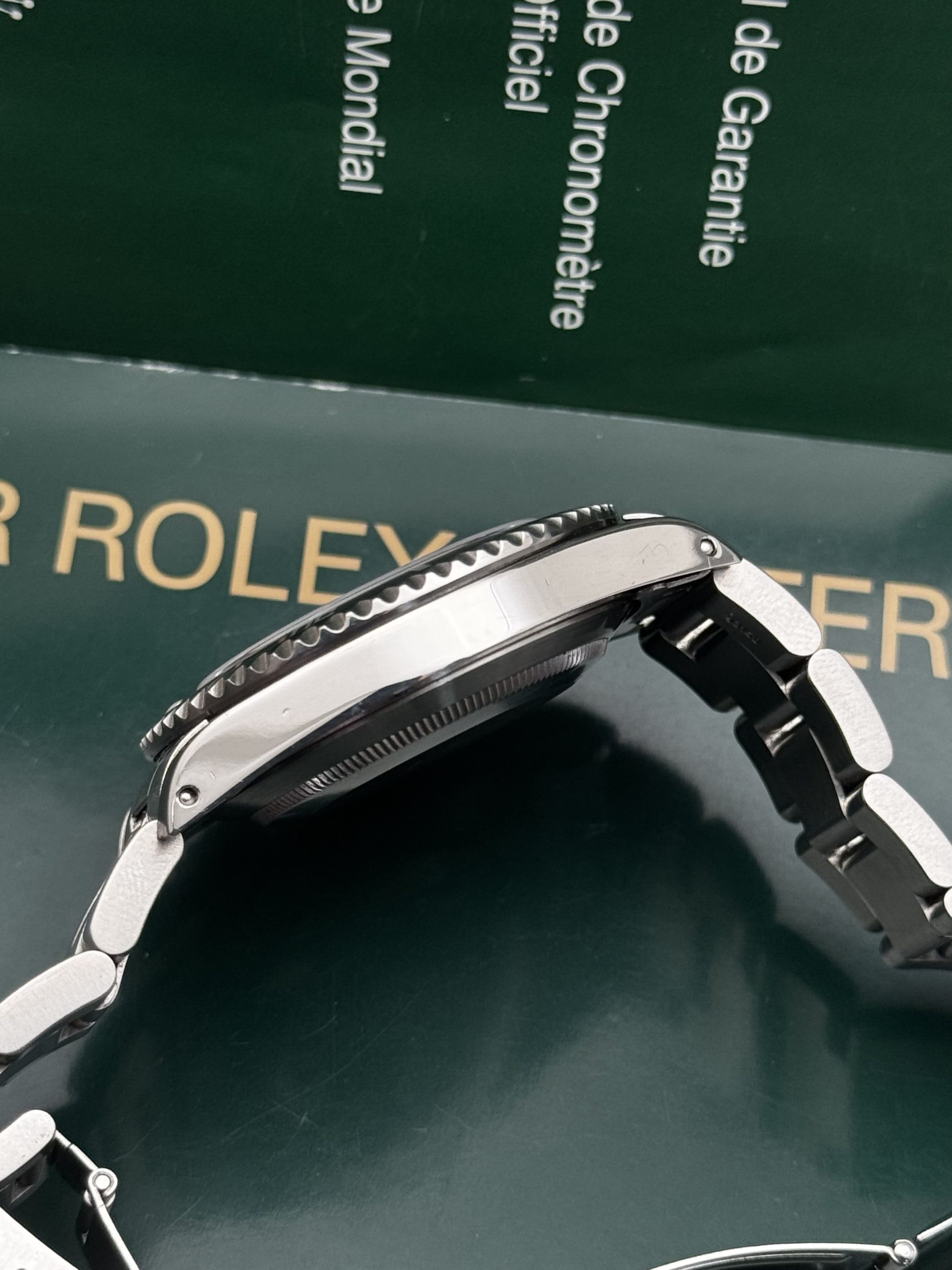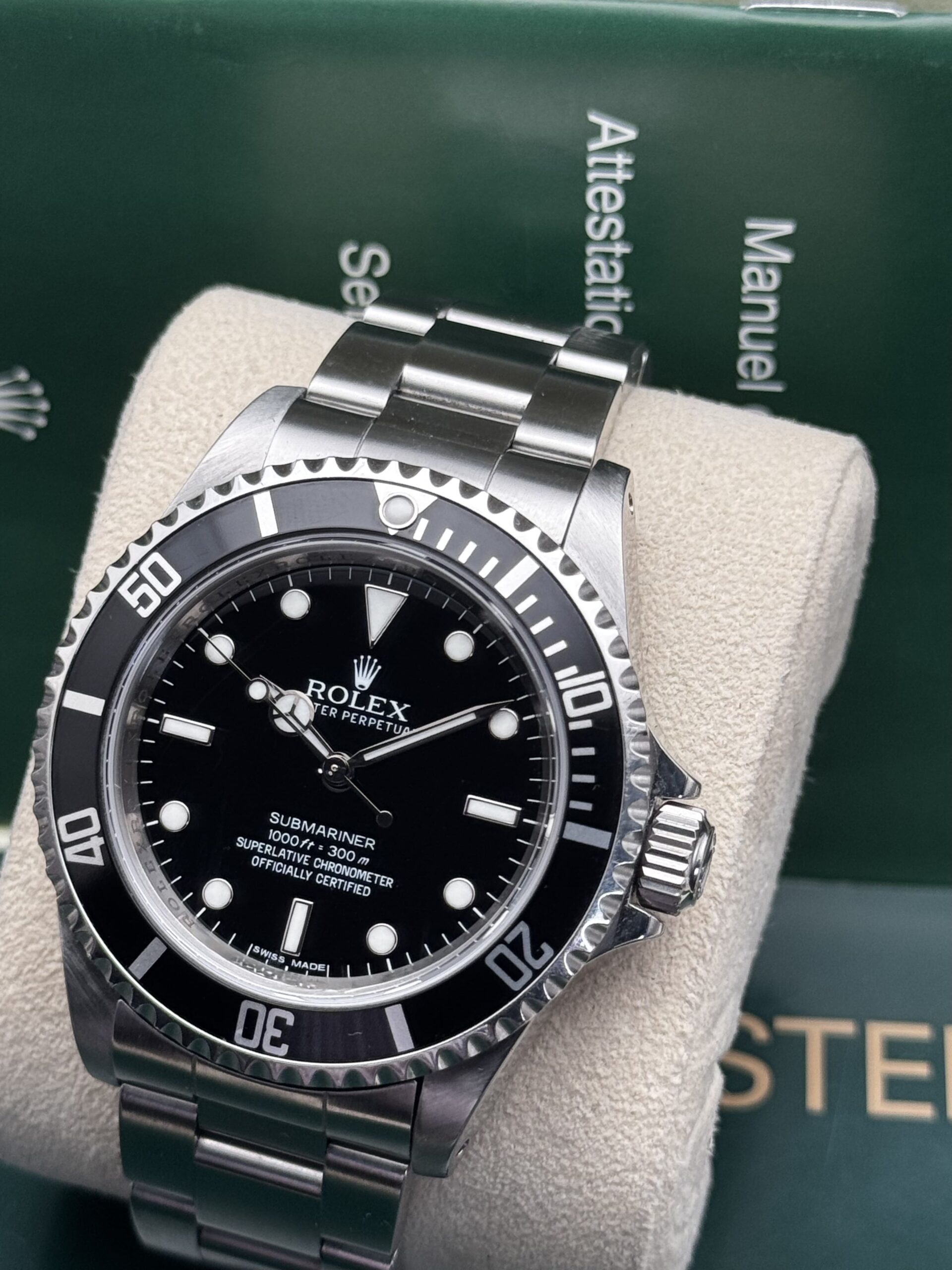 No hay un paso más allá de SEGURIDAD con un reloj como el Submariner, en muchos sentidos. Y encima en la versión No-Date del año 2010, año que nos permite gozar del calibre 3130 CERTIFICADO COMO CRONÓMETRO (dial de cuatro líneas o «Four Liner»), Super-LumiNova en los índices y manecillas; además del «Rehaut» que hasta hoy se mantiene como la regla general en Rolex. Ventajas exclusivas de los ÚLTIMOS AÑOS DE PRODUCCIÓN 🤯.