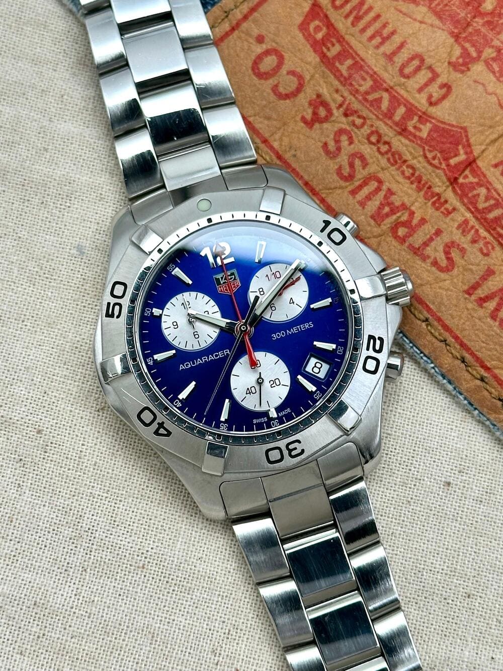 TAG Heuer Aquaracer 300M Chronograph Electric Blue Dial 41 mm, década del 2000.
