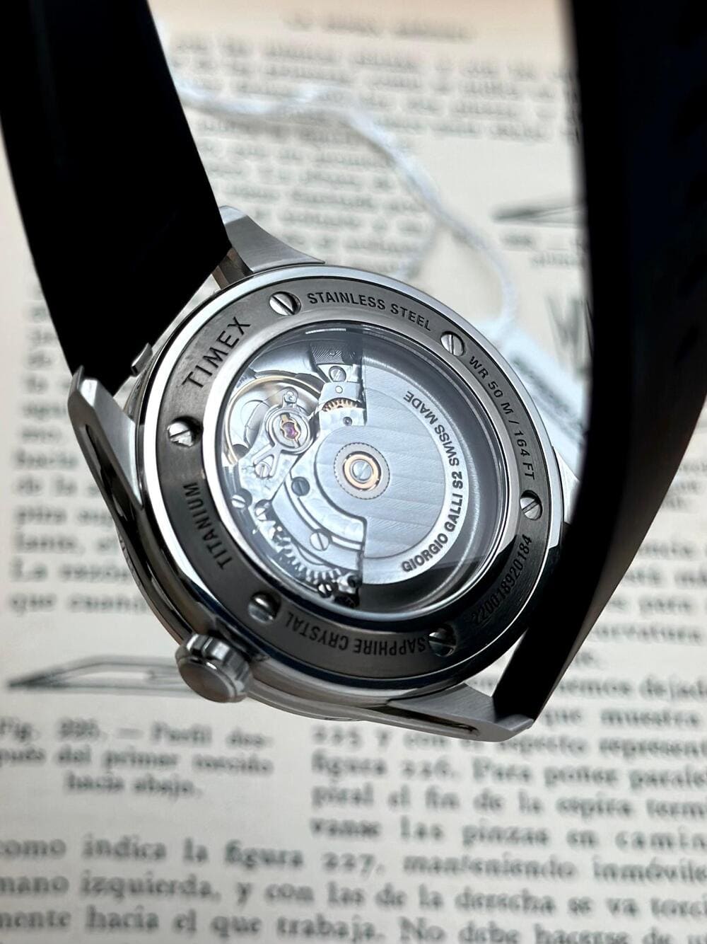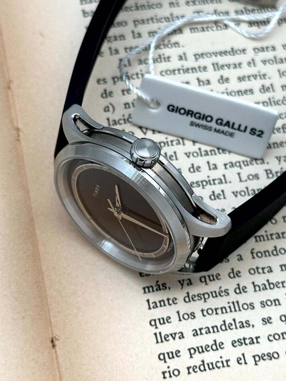 El S2 es el PRIMER RELOJ Swiss Made de Timex en décadas -ensamblado en el Timex Group Atelier en Suiza-, con movimiento suizo automático, cristal zafiro abombado y una construcción de caja que NO SE VE en este rango de precio: ¡MÍRENLO DE COSTADO 😱! No es sólo minimalismo: es lo que Giorgio Galli llamó «minimalismo rico», líneas puras, diseño esencial, pero con profundidad en cada decisión. Se nota un reloj superior, para conocedores.