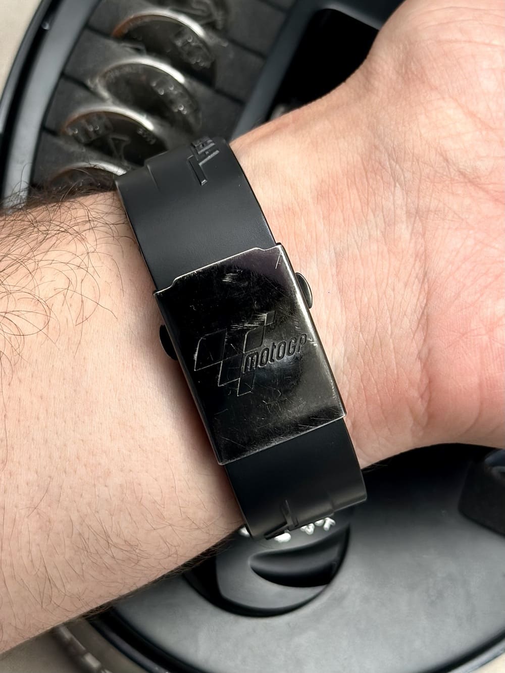 La correa completa la experiencia desde lo físico. Firme, técnica y bien integrada, ofrece una sujeción segura que refuerza la sensación de control en muñeca, como el ajuste preciso antes de salir a pista 😌.